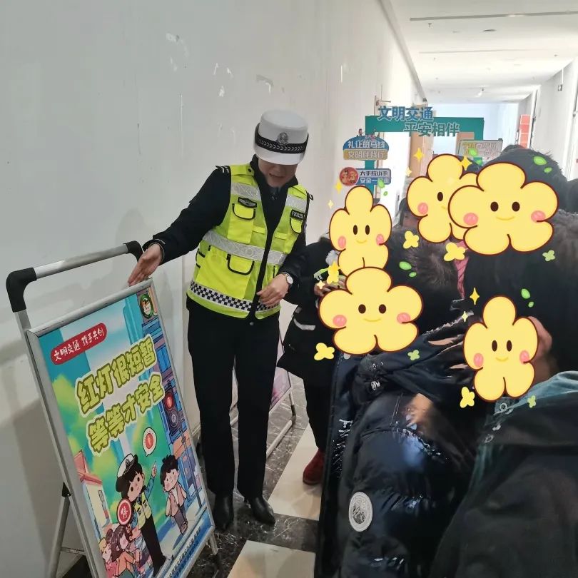 随后,来自公安局交通管理大队的民警播放了2024年电动三四轮车事故警示片,提醒大家在日常出行中遵守交通规则,保护自己和他人的安全。他们还准备了交通安全知识问答和参观交通安全知识宣传板两个环节,向在场观众普及了交通安全知识。这种面对面的交流形式极大地提高了学生们的参与热情,让他们深刻认识到遵守交通安全不仅是对自己负责,更是对他人生命的尊重。