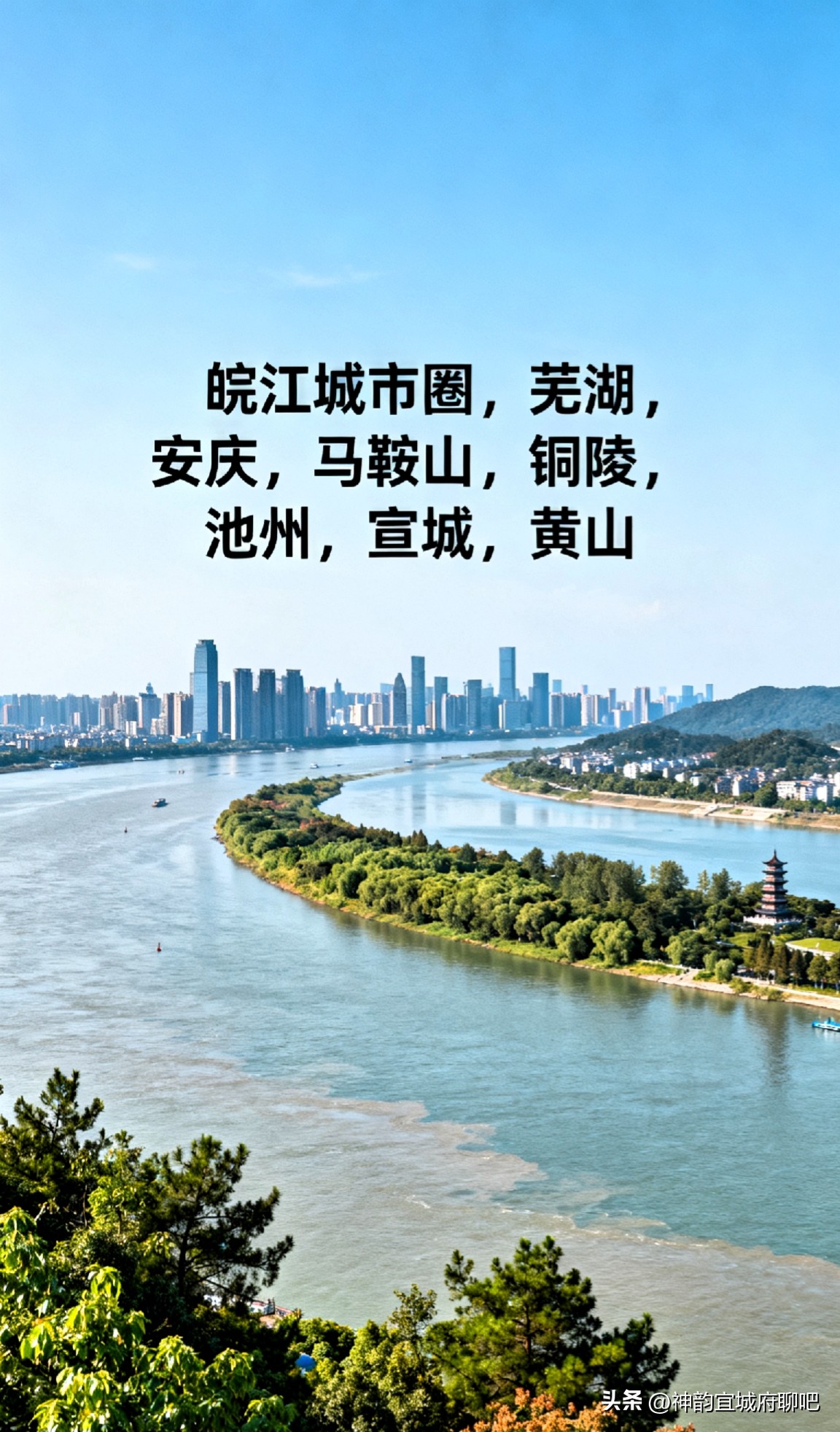 以芜湖、安庆为双核心,联动马鞍山、铜陵、池州、滁州、六安(皖江五市)及宣城、黄山,立足“全域统筹、成片发展”核心逻辑,对标苏南“产业集群化、交通一体化、生态共保化”发展路径,构建功能互补、要素互通、能级共进的现代化城市圈,力争未来15年成长为媲美苏南的高质量发展样板。
